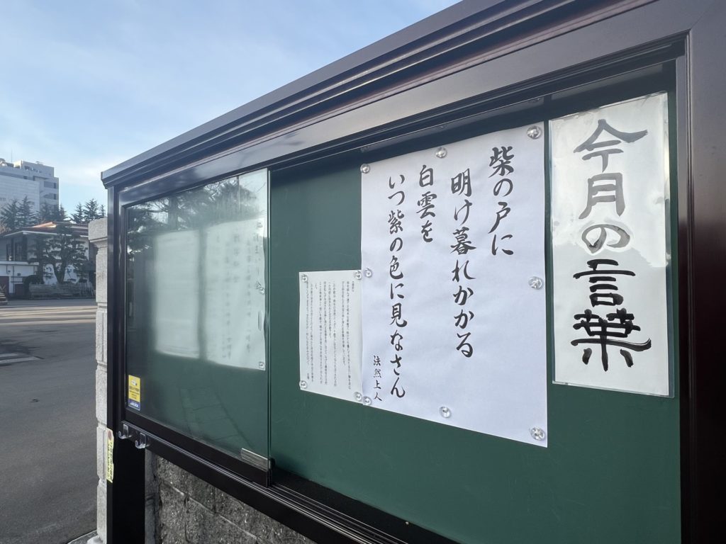 このお歌が詠まれた法然上人のように穏やかに阿弥陀様の来迎の紫雲を見ることができるよう、今日もただ一向に「なむあみだぶつ」。